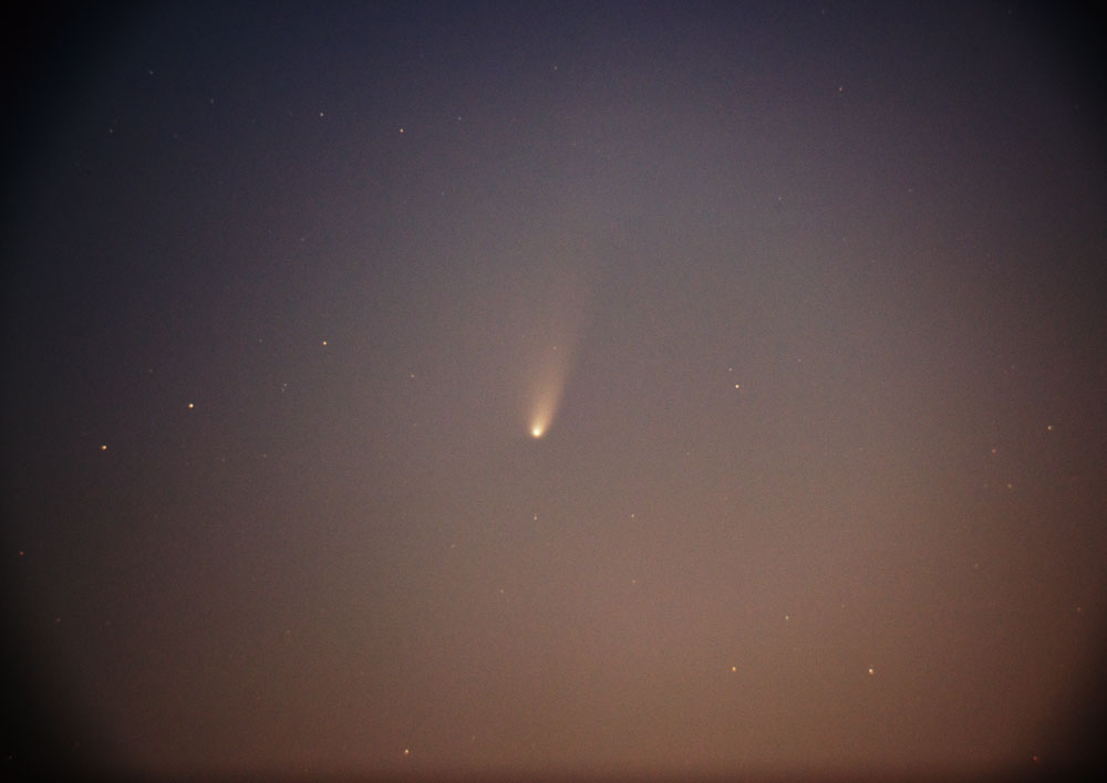 鮮明ながら濃く太いダストの尾に寄り添うようにイオンの尾が
